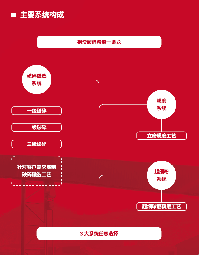新鄉(xiāng)長城根據(jù)其鋼渣各階段特性,開發(fā)出破碎磁選、制粉、超細(xì)粉三大工藝系統(tǒng)處理鋼渣,能有效提高鋼渣利用率及資源化利用的附加值。
